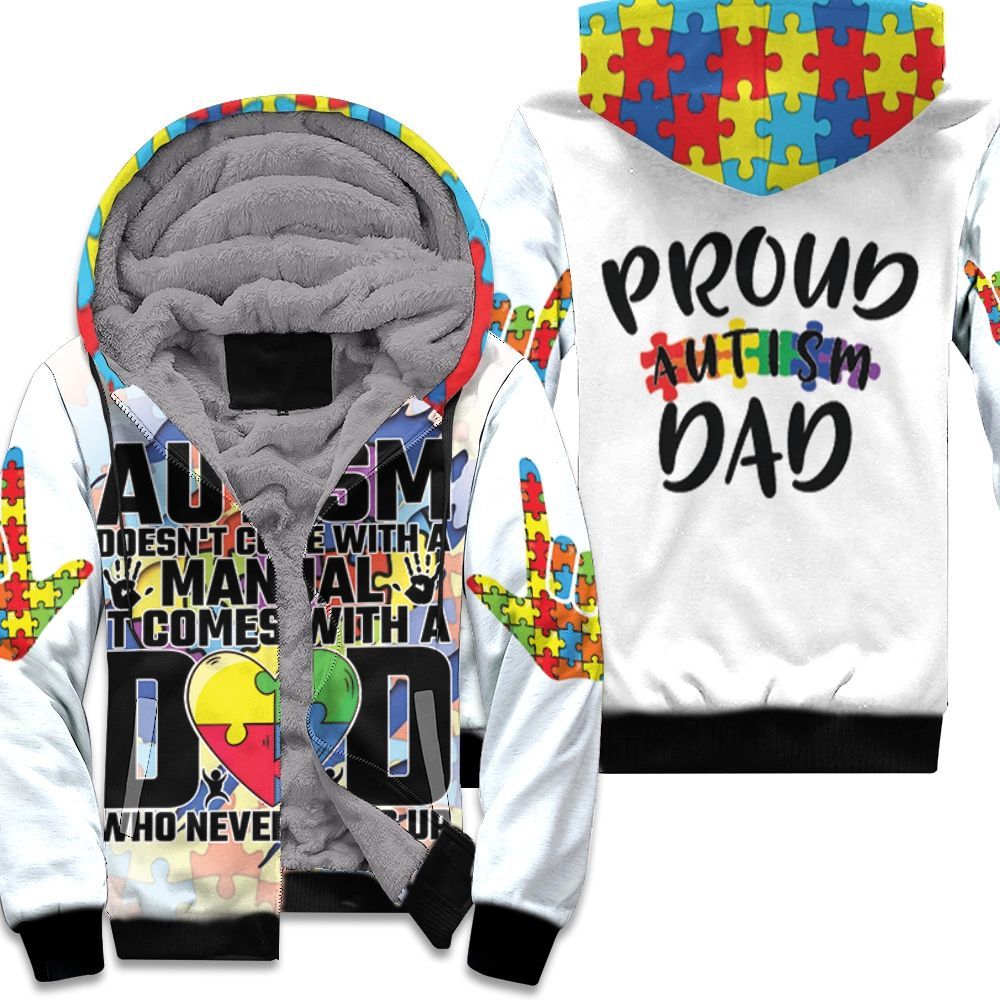 Autism Comes With A Dad Never Gives Up Unisex Fleece Hoodie