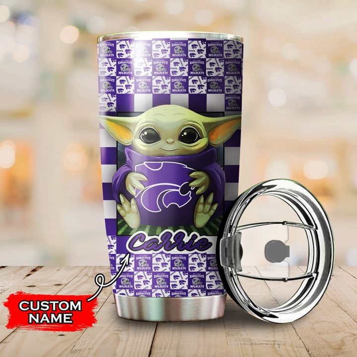 Baby Yoda Love Kansas State Wildcats Custom Name Tumbler 012 TB1410