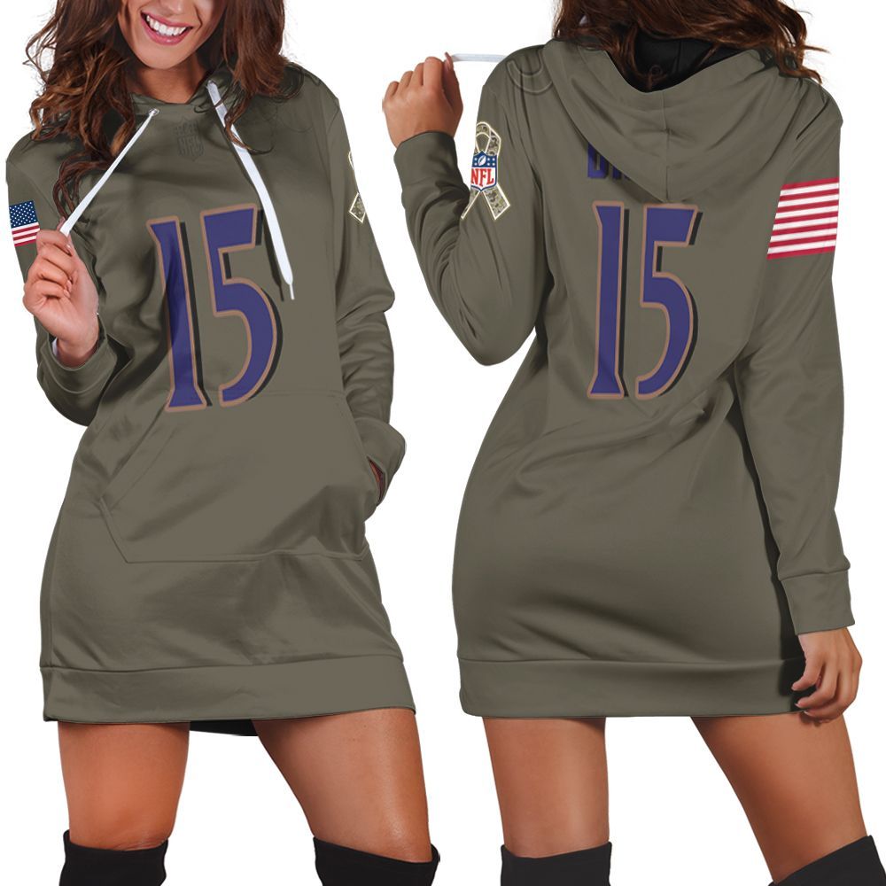 Baltimore Ravens Marquise Brown #15 NFL Deion Sanders Salute To Service Retired Player Olive 3D Hoodie Dress HD3611