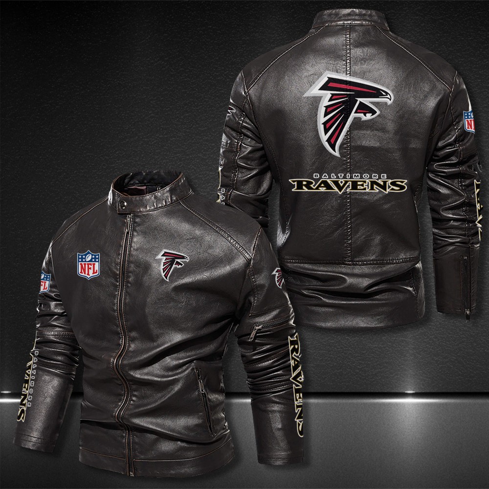 Baltimore Ravens Motor Collar Leather Jacket For Biker Racer