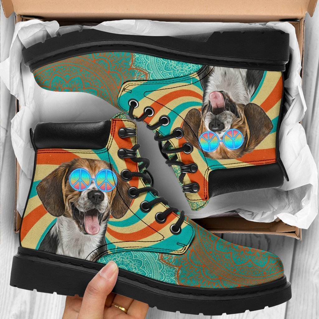Beagle Dog Boots Funny Hippie Style Shoes CB0885