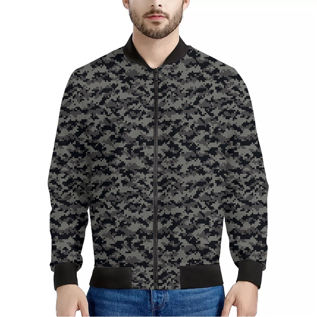 Black And Grey Digital Camo Print Bomber Jacket