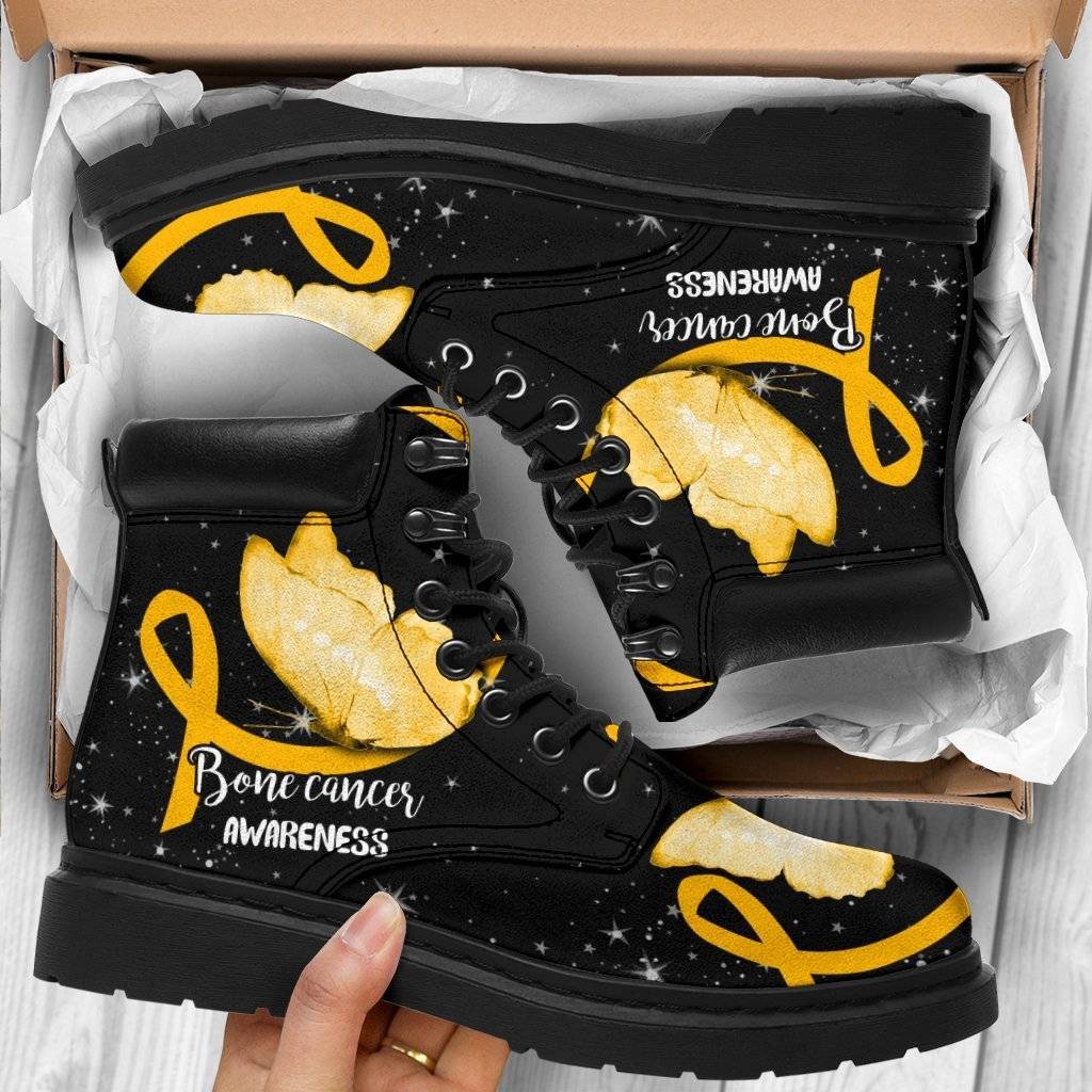 Bone Cancer Awareness Boots Ribbon Butterfly Shoes CB0890
