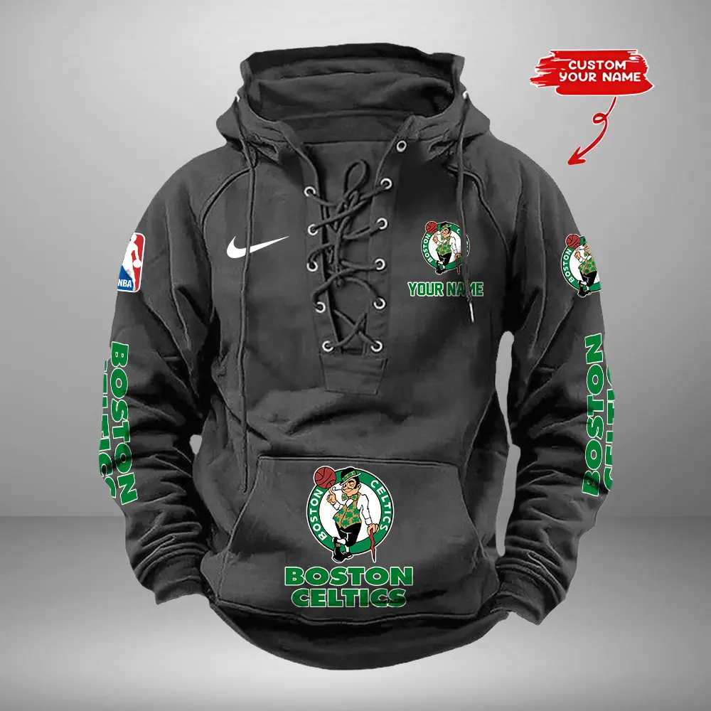 Boston Celtics Personalized NBA Swoosh Lace Up Hoodie Vintage Retro Hoodie