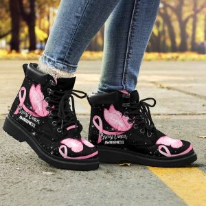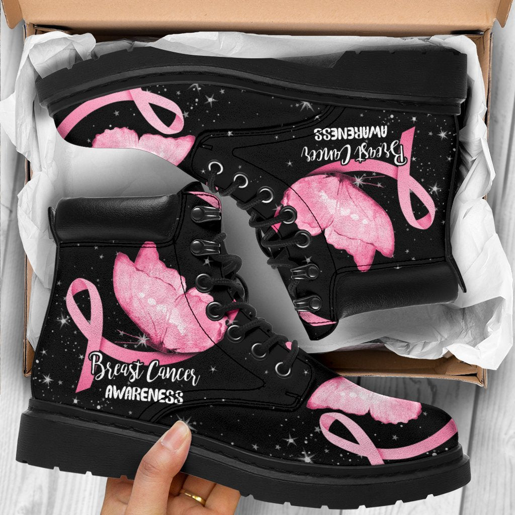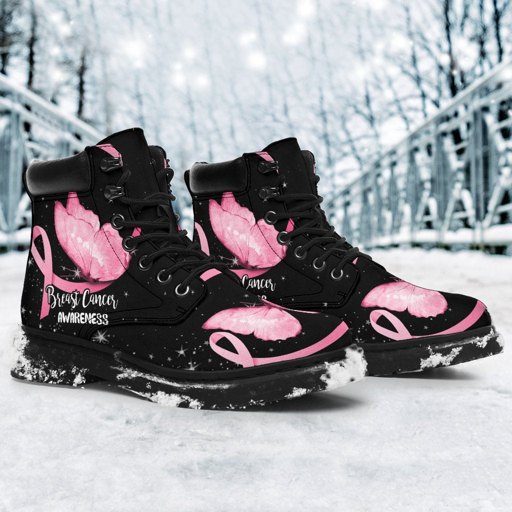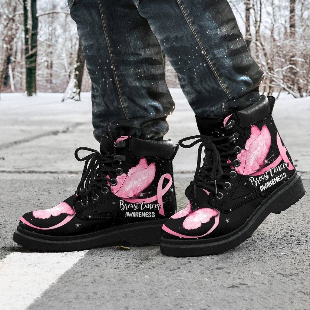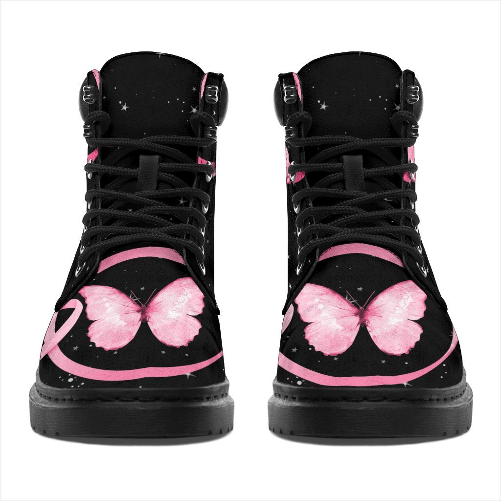 Breast Cancer Awareness Boots Ribbon Butterfly Shoes CB0894