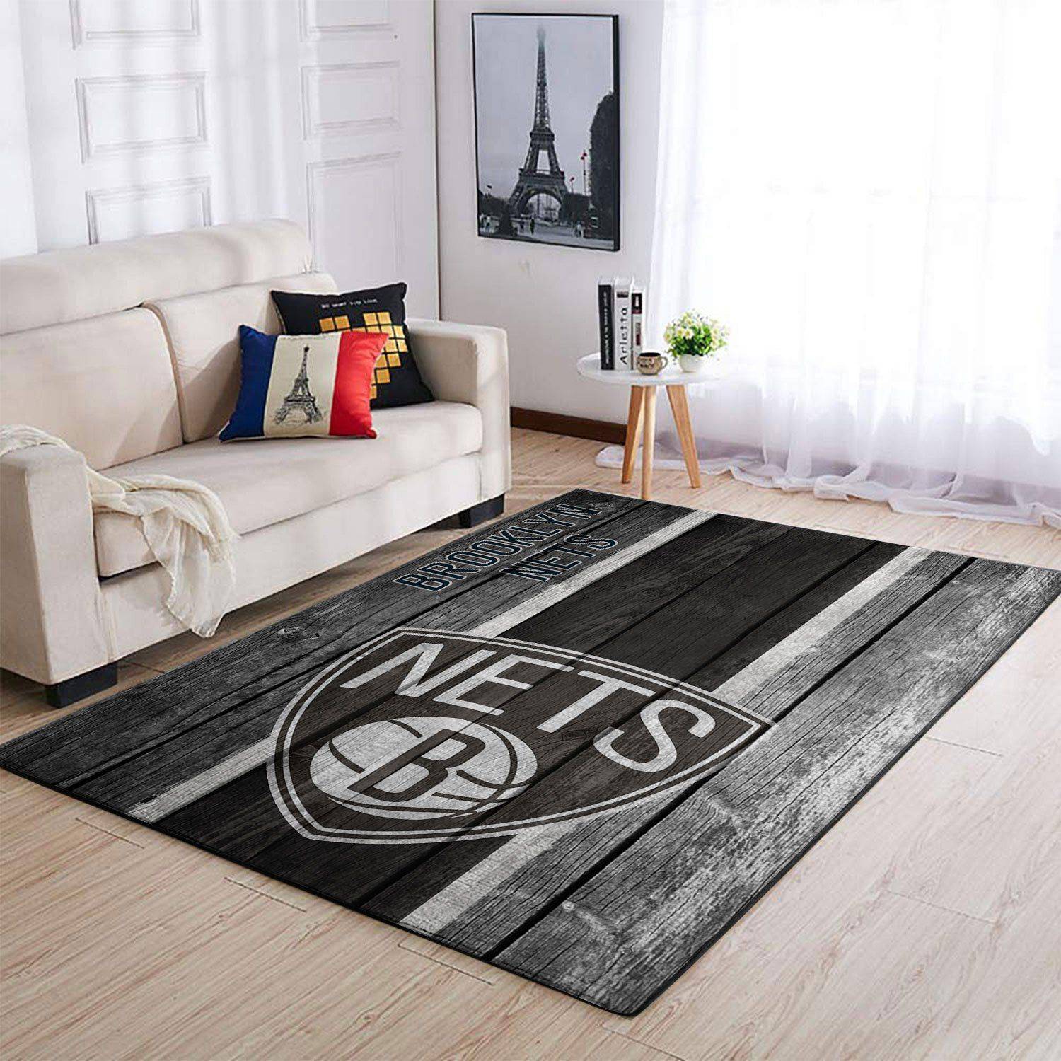 Brooklyn Nets NBA Team Logo Wooden Style Nice Gift Home Decor Rectangle Area Rug R0650