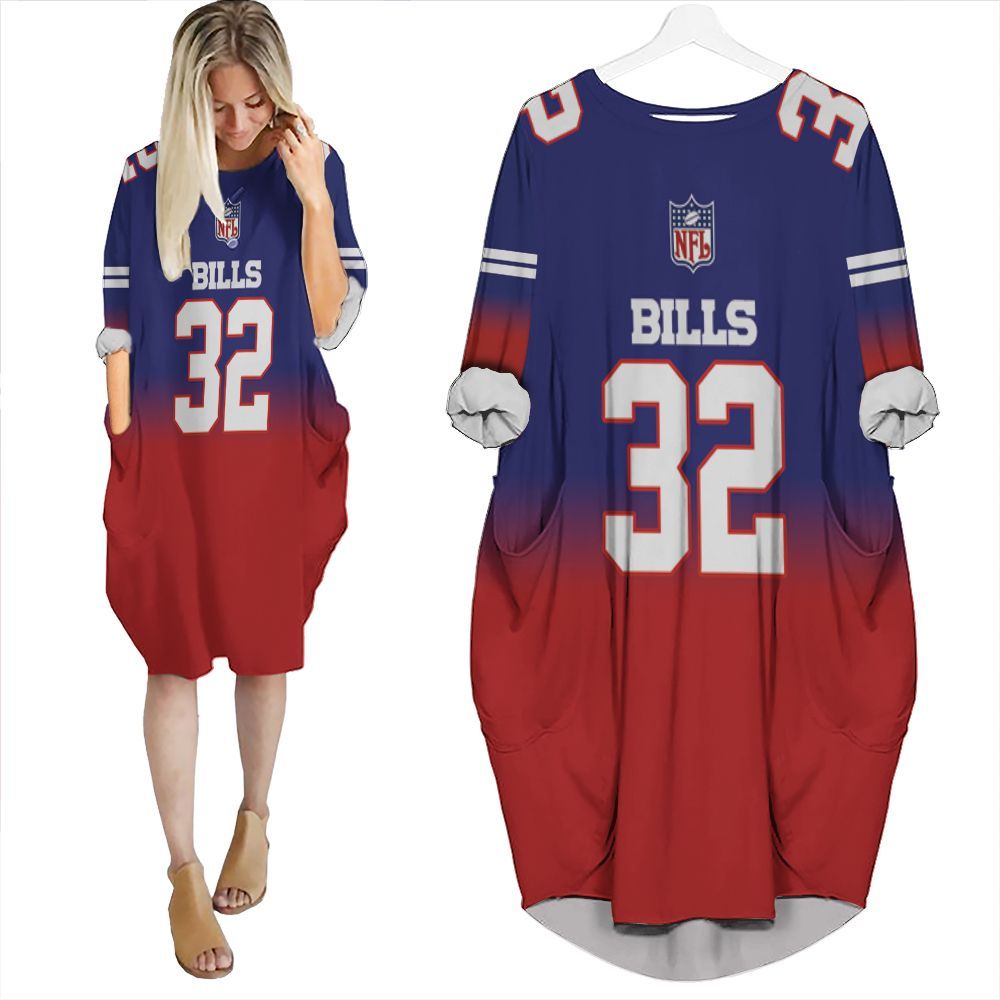 Buffalo Bills O J Simpson #32 Great Player Nfl American Football Team Royal Color Crash 3D Gift For Bills Fans Batwing Pocket Dress PD3285