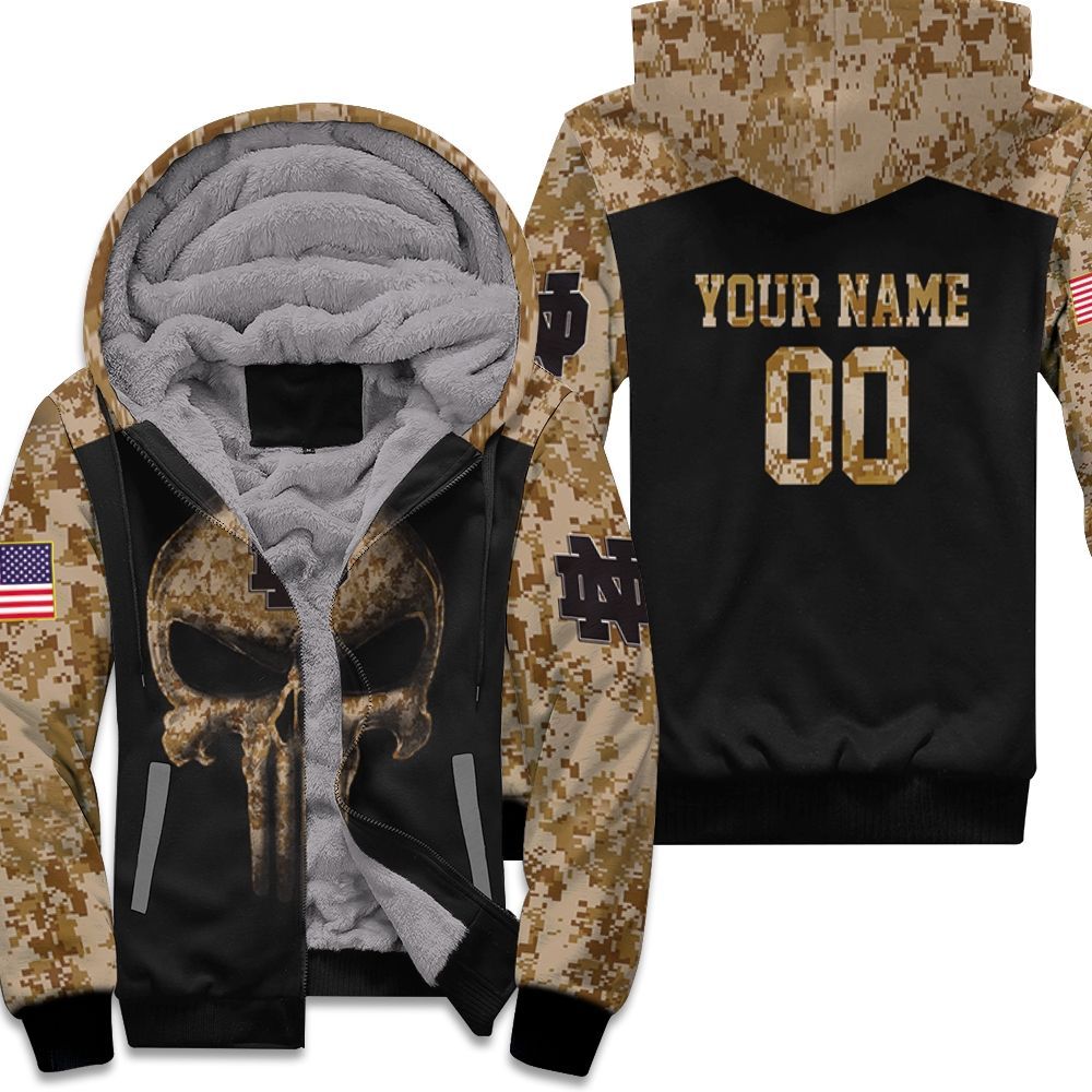 Camouflage Skull Notre Dame Fighting Irish American Flag 3D Personalized Unisex Fleece Hoodie