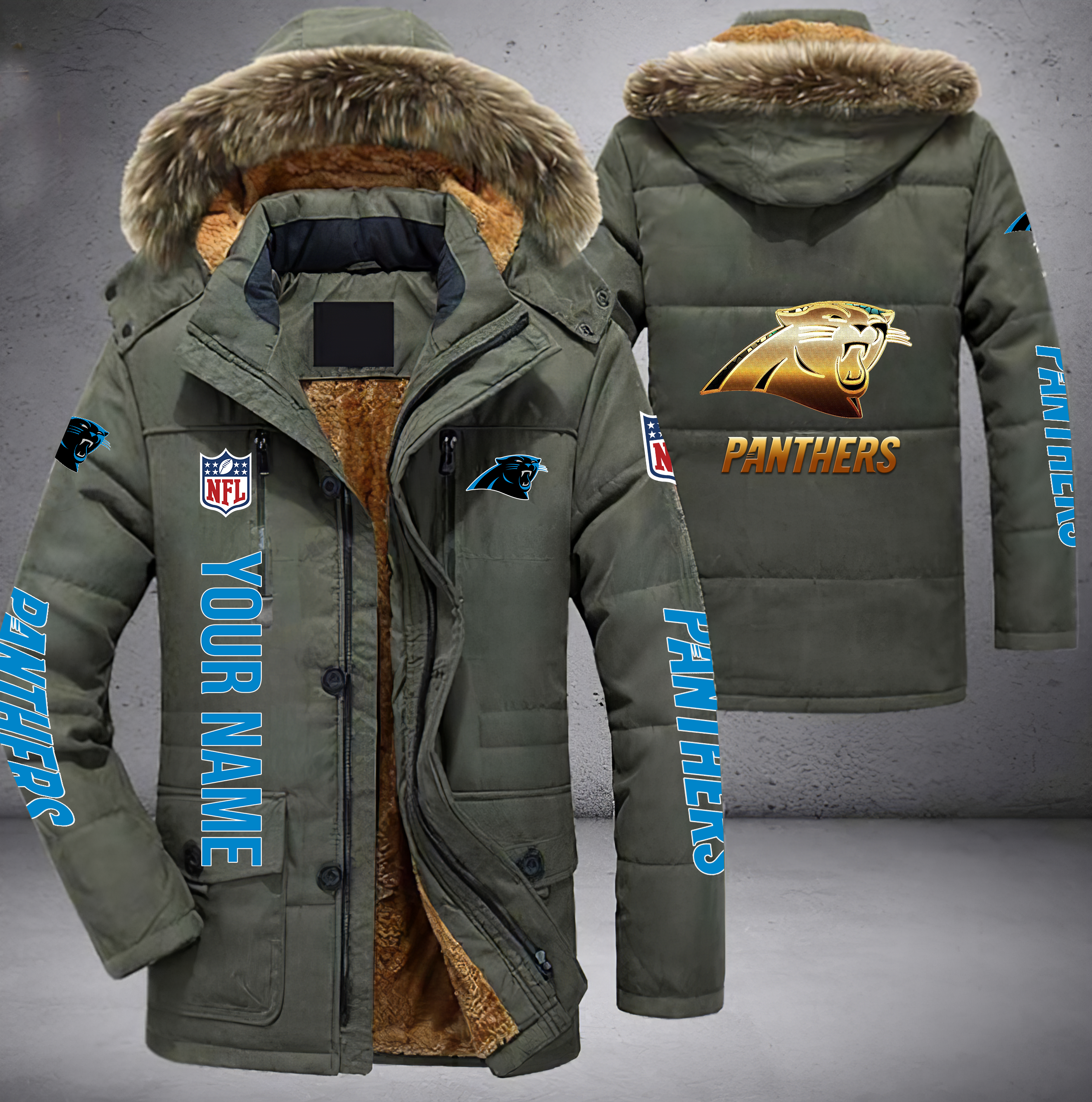 Carolina Panthers NFL Personalized Golden Logo Parka Jacket Fleece Coat Winter