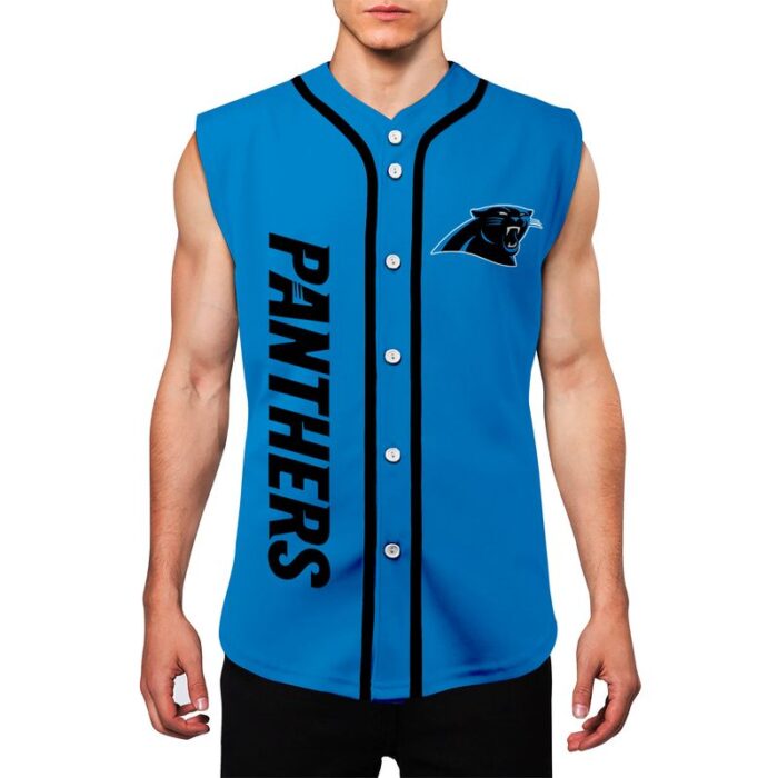 Carolina Panthers Sleeveless Baseball Jersey Tank Top Custom Name BBTJ1038