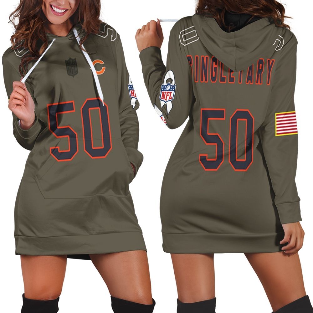 Chicago Bears Mike Singletary #50 NFL Salute To Service Retired Player Limited Olive Hoodie Dress HD3606