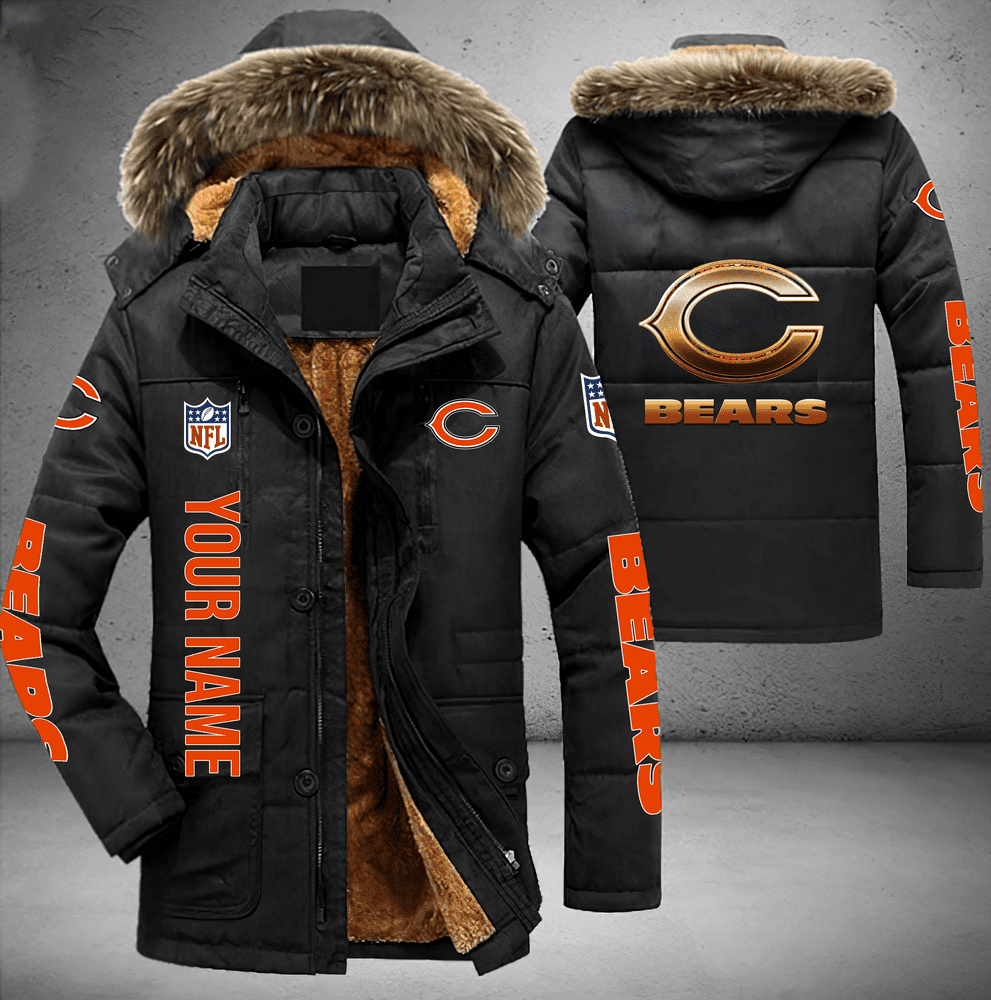 Chicago Bears NFL Personalized Golden Logo Parka Jacket Fleece Coat Winter