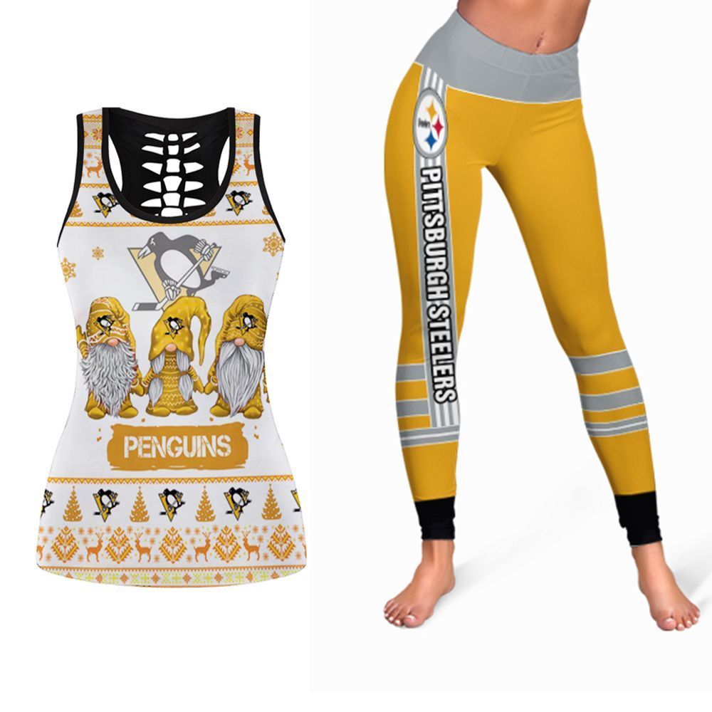 Christmas Gnomes Pattern Pittsburgh Penguins NHL Ice Hockey Tank Top And Legging Set Gift For Penguins Fans