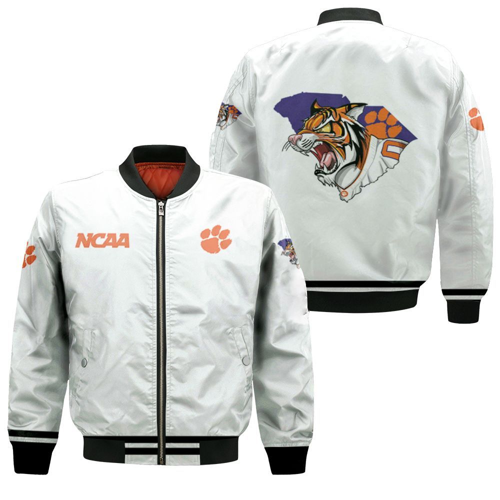 Clemson Tigers NCAA Classic White With Mascot Logo Gift For Clemson Tigers Fans Bomber Jacket BBJ0238
