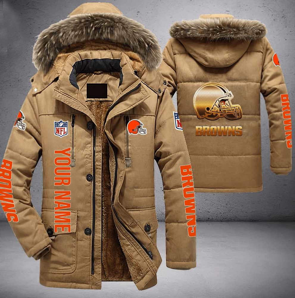 Cleveland Browns NFL Personalized Golden Logo Parka Jacket Fleece Coat Winter