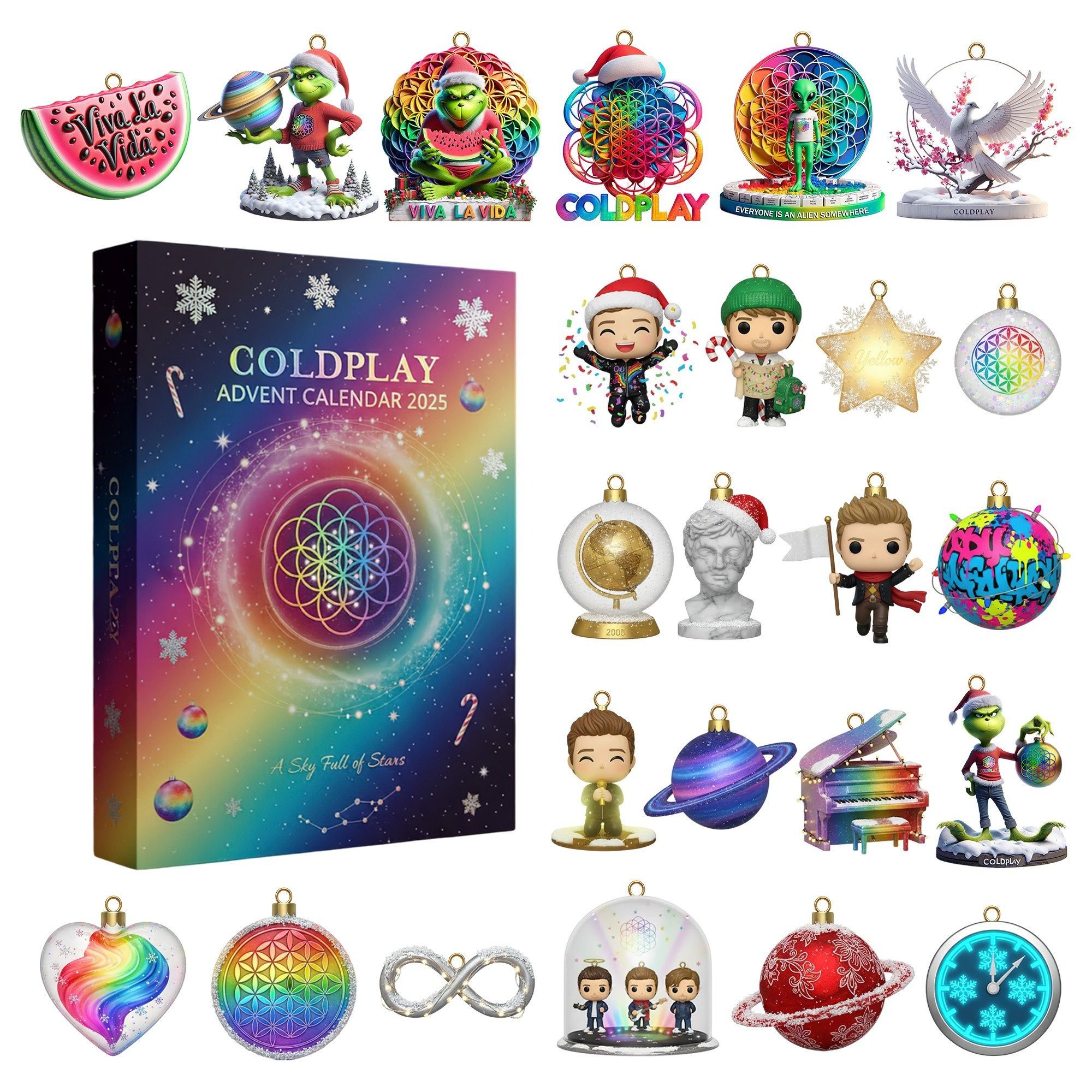 Coldplay Advent Calendar Acrylic Hanging Decor Box 2025 – 24 Days of Music Magic & Light