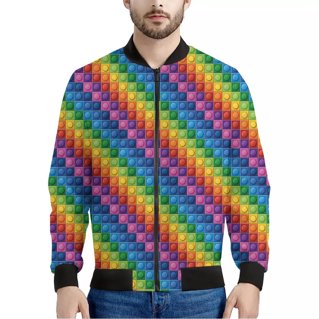 Colorful Plastic Building Blocks Print Bomber Jacket