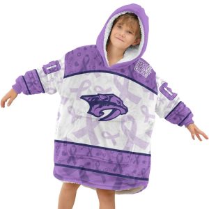 Custom NHL Nashville Predators Lavender Hockey Fights Cancer Oodie Blanket Hoodie Wearable Blanket