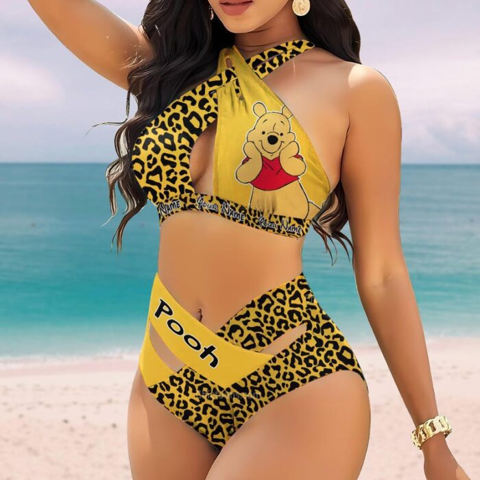 Custom Winnie-the-Pooh Leopard Women’s 2PCS Bikini Swimsuit Crisss Cross Cutout Bathing Suit EBN1023