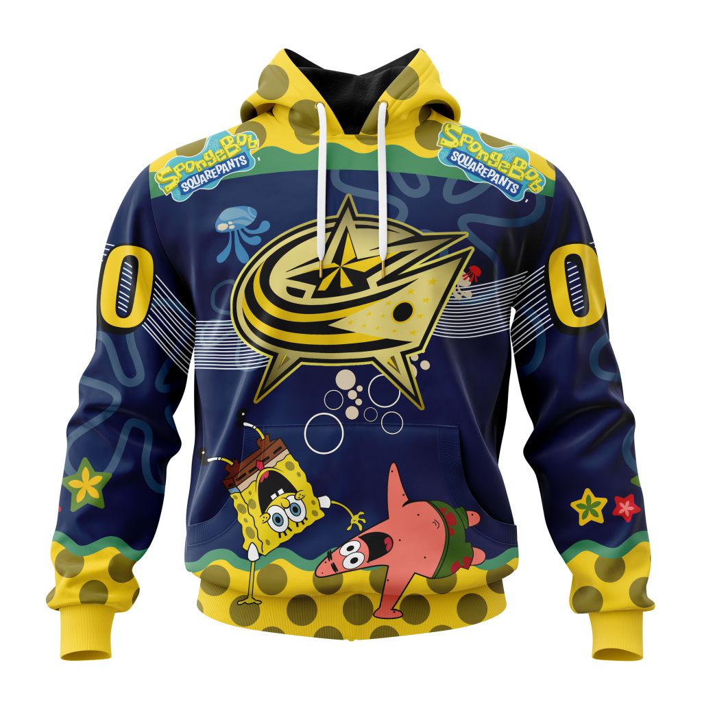 Customized NHL Columbus Blue Jackets Specialized Jersey With SpongeBob Unisex Pullover Hoodie
