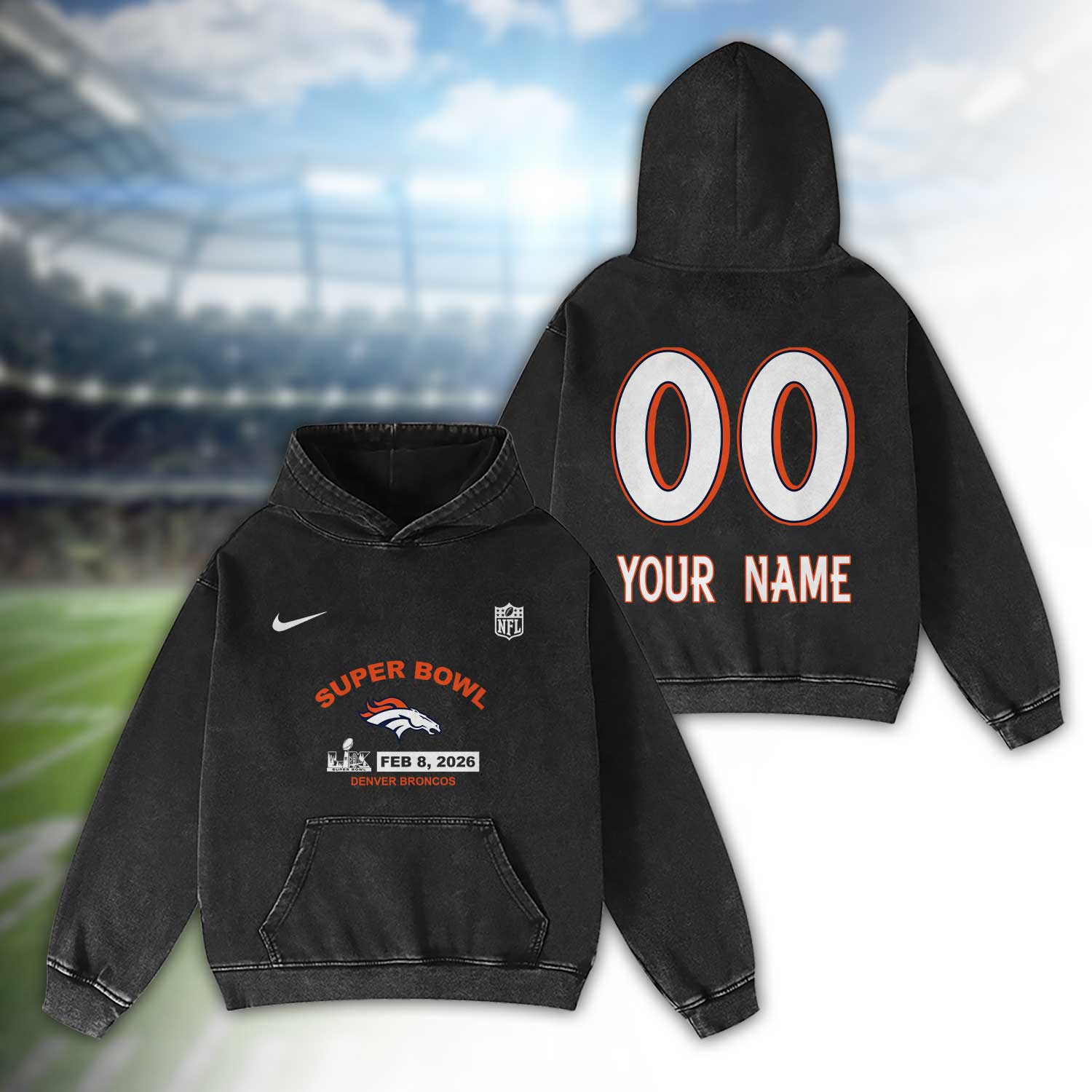 Denver Broncos Bad Bunny Super Bowl LX 2026 2D Washed Hoodie