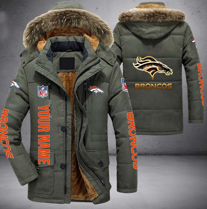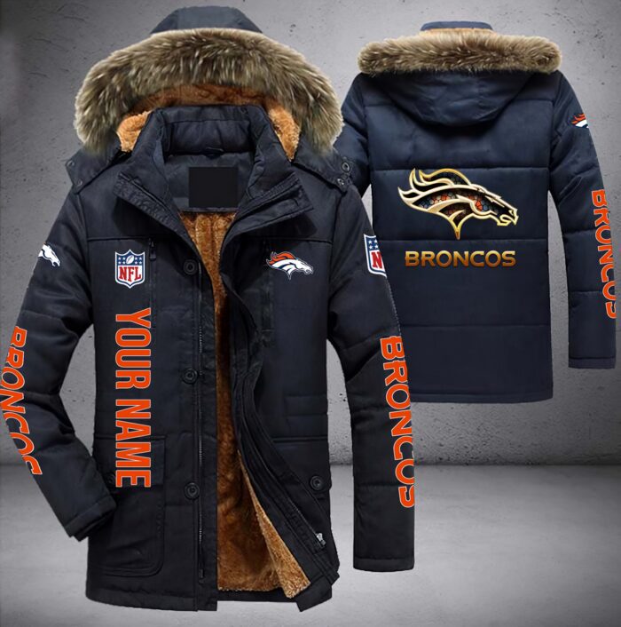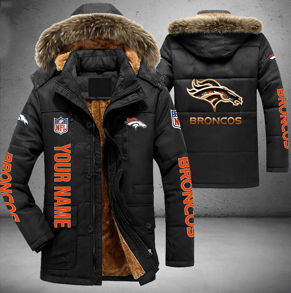 Denver Broncos NFL Personalized Golden Logo Parka Jacket Fleece Coat Winter