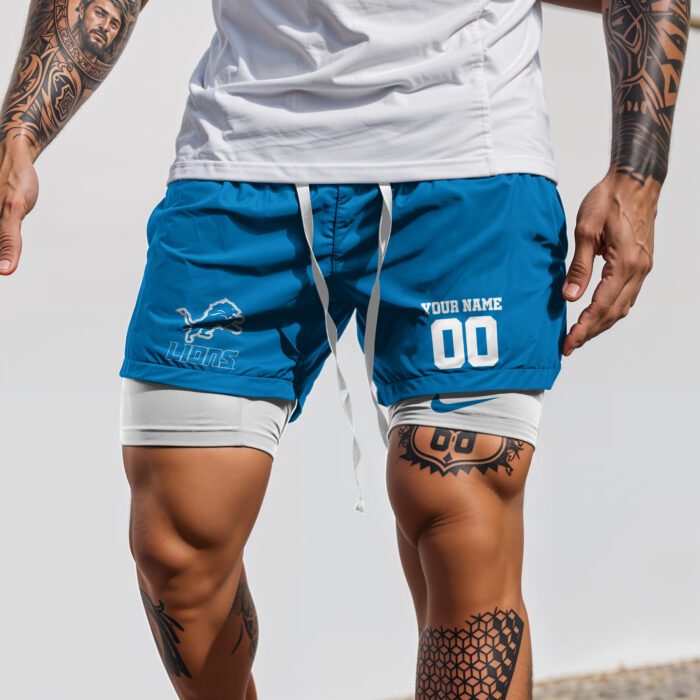 Detroit Lions NFL Double Layer Shorts Custom Your Name And Number WDS1044