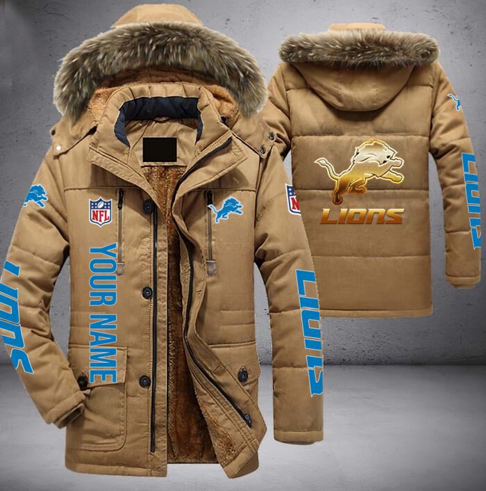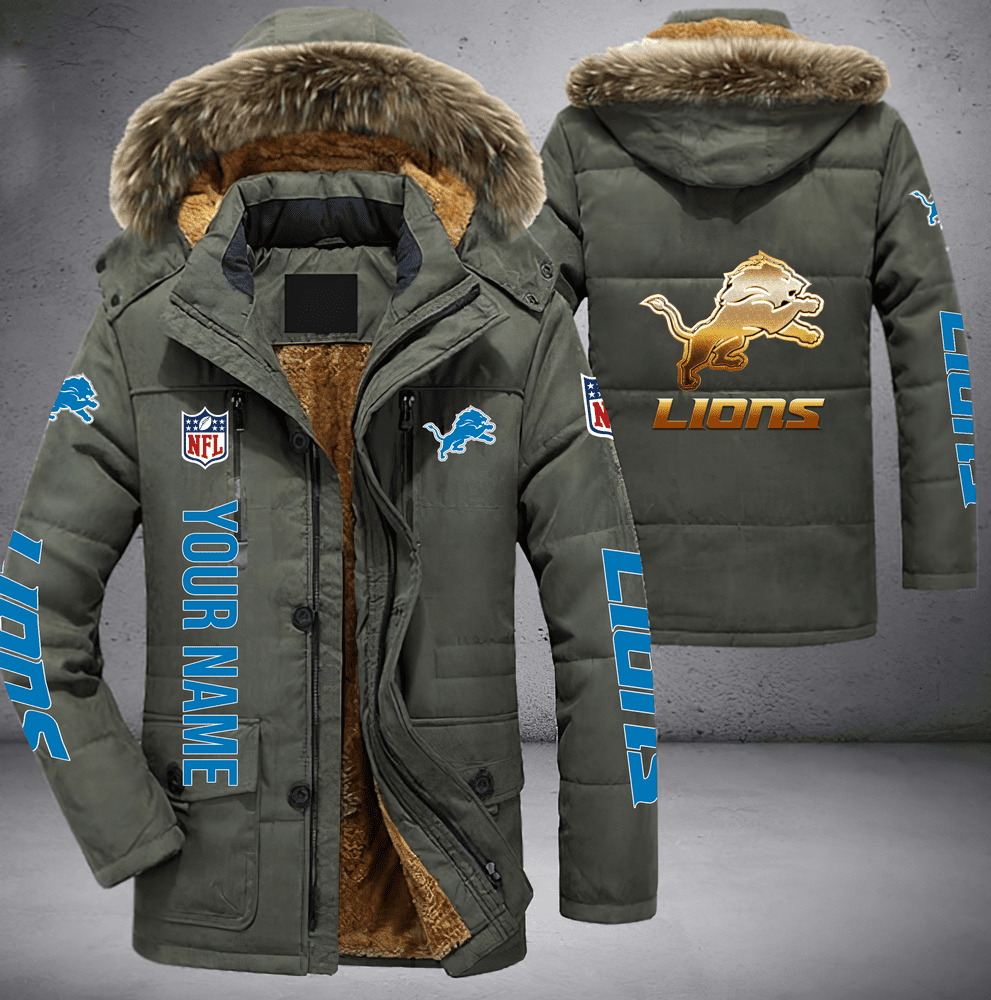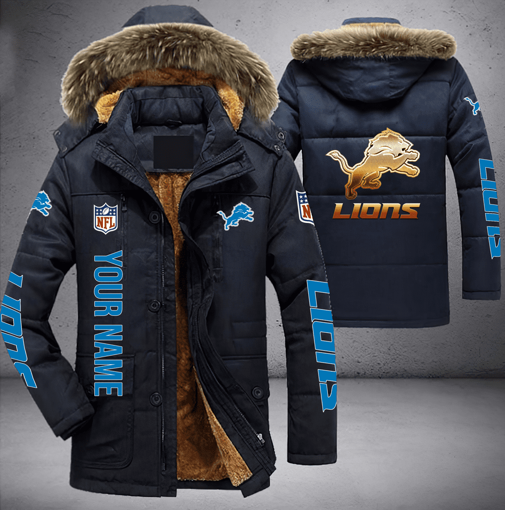 Detroit Lions NFL Personalized Golden Logo Parka Jacket Fleece Coat Winter