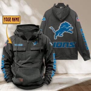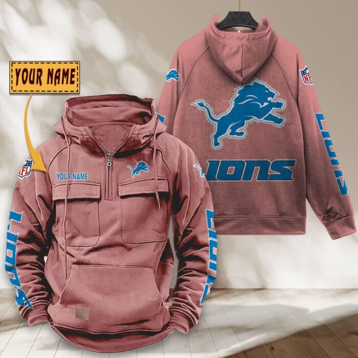 Detroit Lions NFL Personalized Multi Pocket Quarter Zip Vintage Hoodie WVH1043