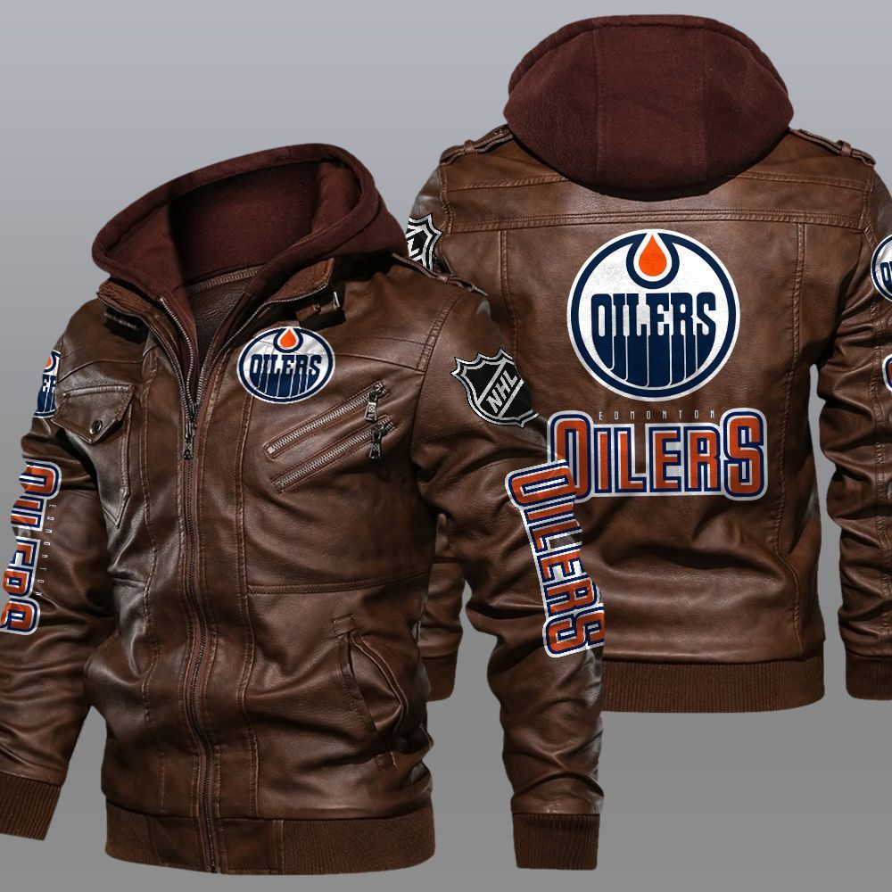 Edmonton Oilers Black Brown Leather Jacket LIZ183