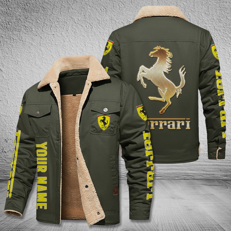 Ferrari Cars Logo Personalized Fleece Cargo Jacket Winter Jacket FCJ1011