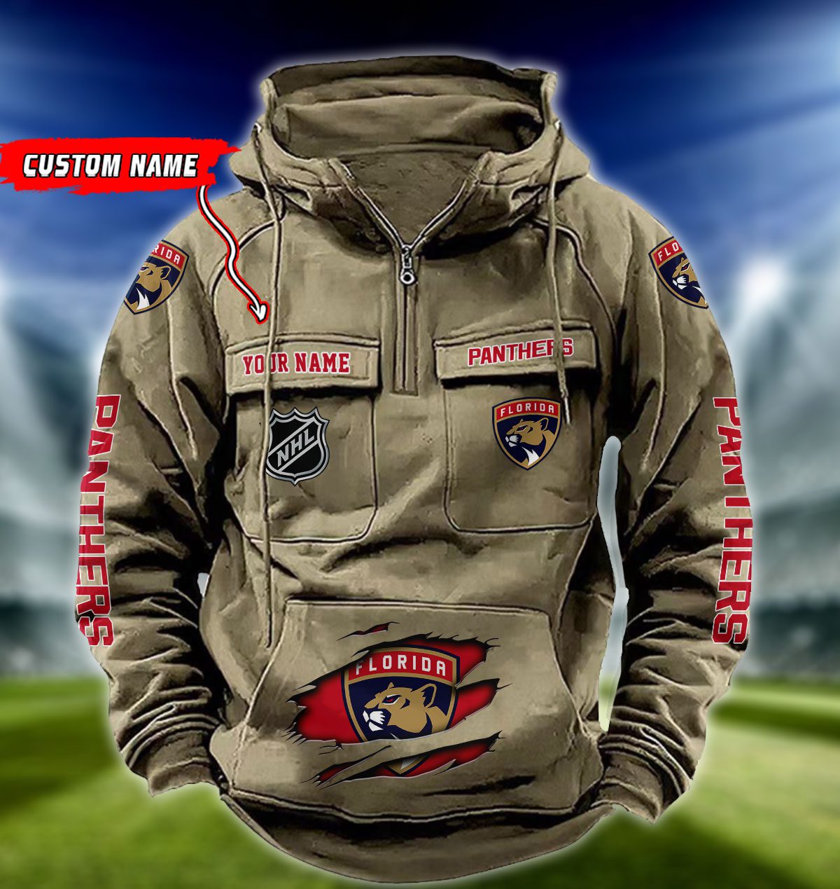 Florida Panthers NHL Hockey Vintage Quarter Zip Hoodie Retro Hoodie Custom Name WRH1013