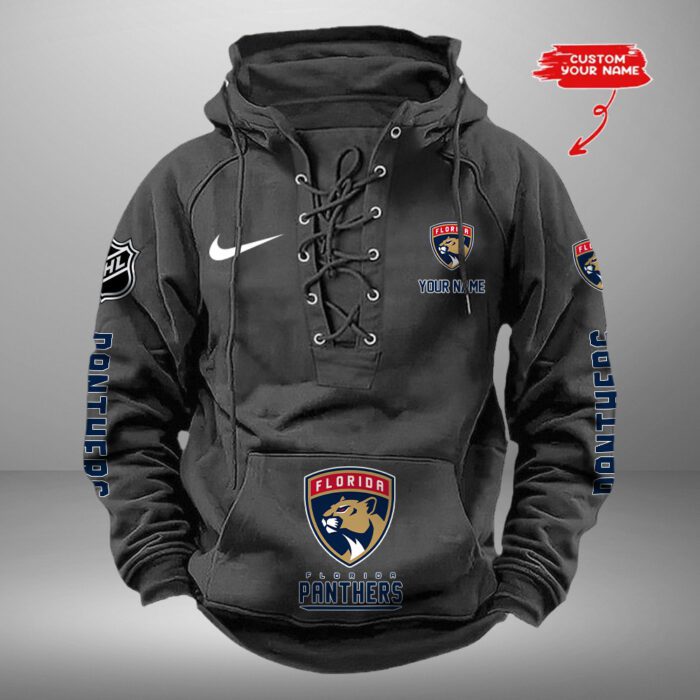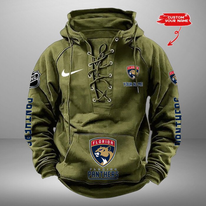 Florida Panthers NHL Swoosh Hooded Lace Up Retro Vintage Hoodie Custom Name