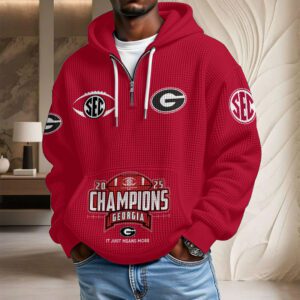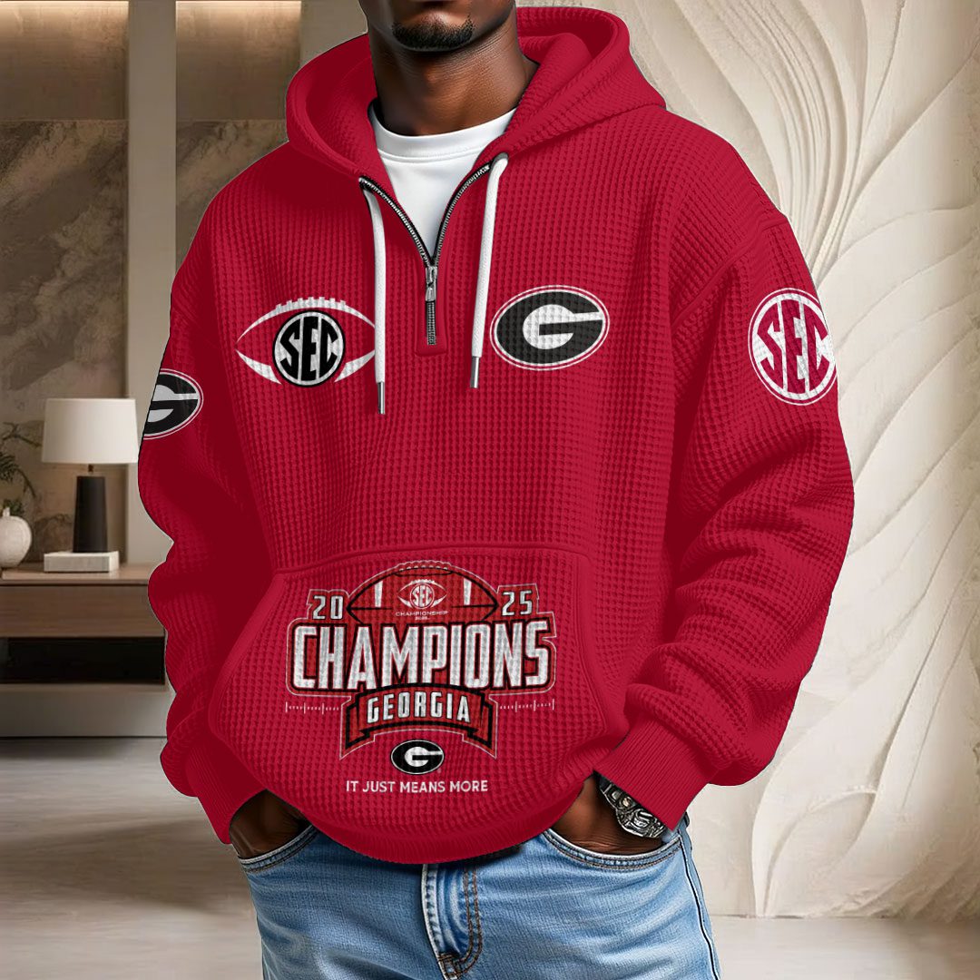 Georgia Bulldogs Football 2025 SEC Champions 3D Unisex Waffle Hoodie UWH1032