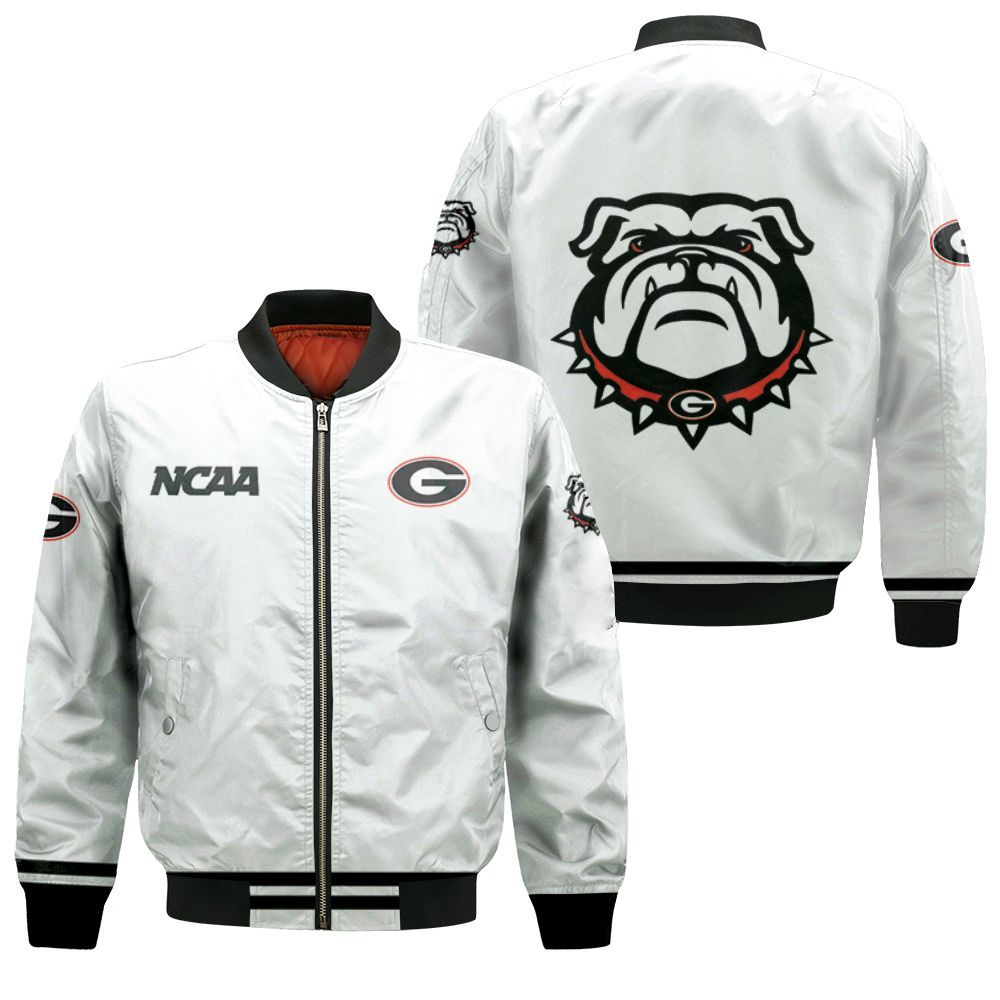 Georgia Bulldogs NCAA Classic White With Mascot Logo Gift For Georgia Bulldogs Fans Bomber Jacket BBJ0741