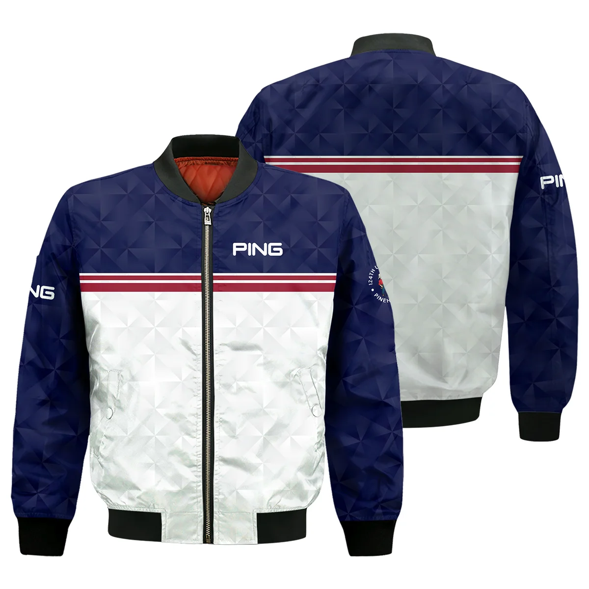 Golf Sport 124th U.S. Open Pinehurst Ping Bomber Jacket Dark Blue White Abstract Geometric Triangles Bomber Jacket GBJ1344