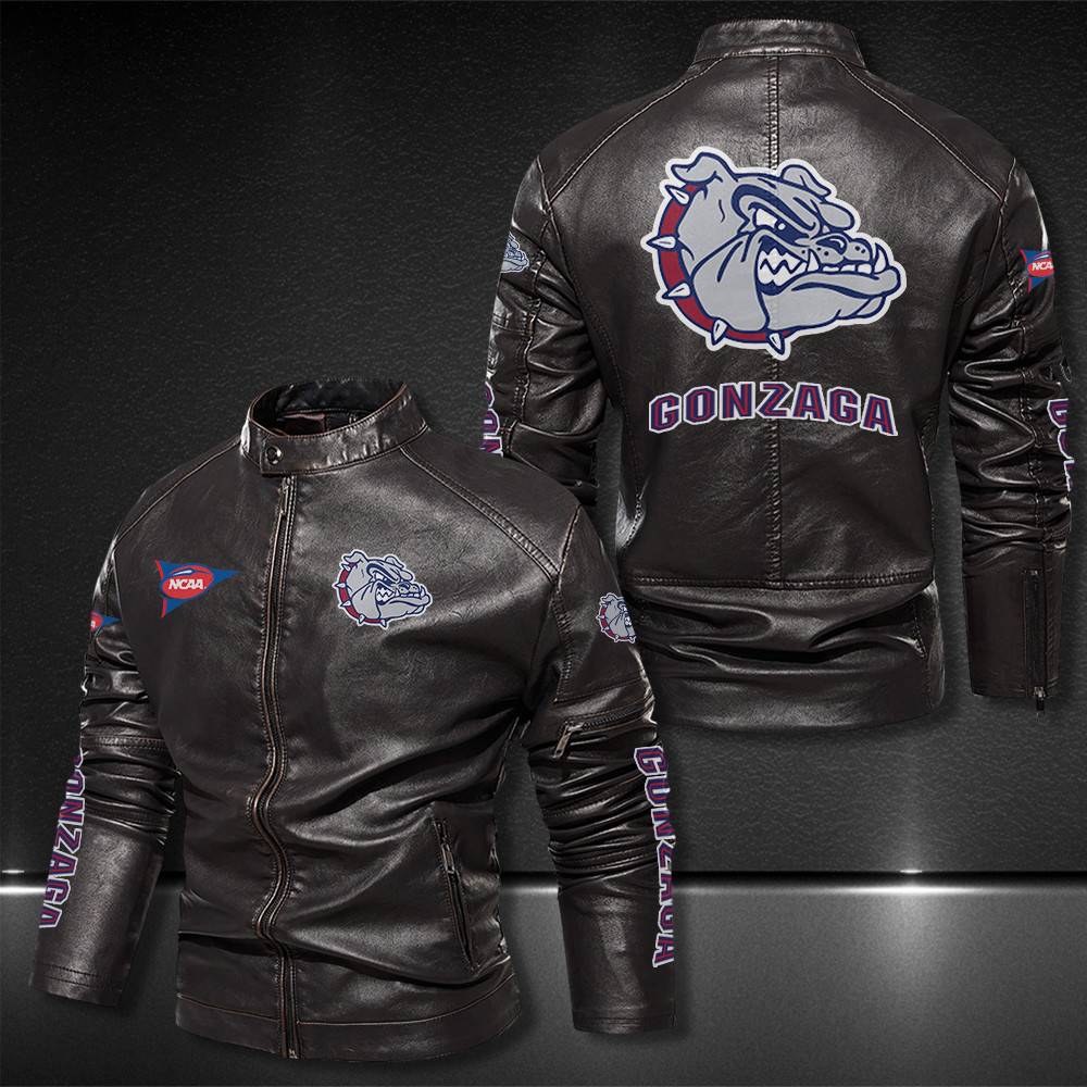 Gonzaga Bulldogs Motor Collar Leather Jacket For Biker Racer