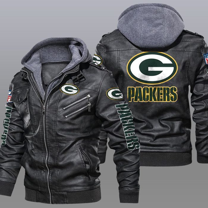 Green Bay Packers Black Brown Leather Jacket LIZ115
