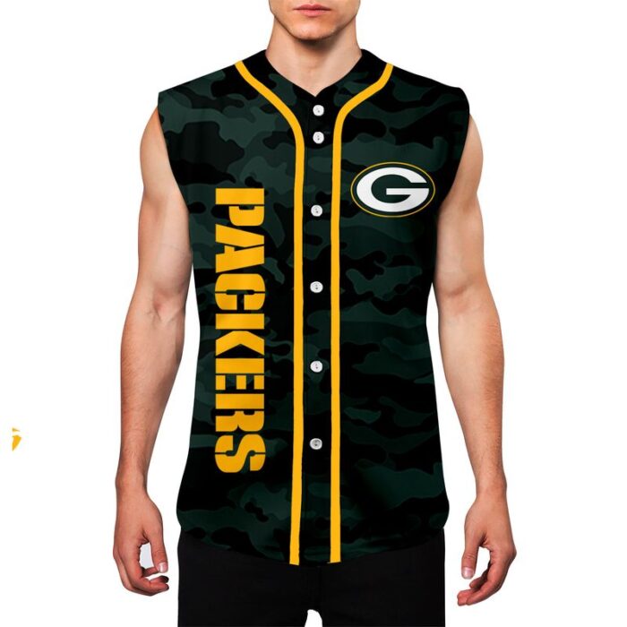 Green Bay Packers Camo Sleeveless Baseball Jersey Tank Top Custom Name BBTJ1076