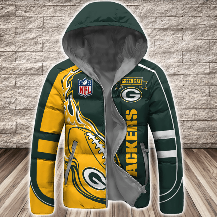 Green Bay Packers NFL 3D Custom Name Down Filled Coat DFC084