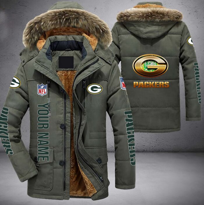 Green Bay Packers NFL Personalized Golden Logo Parka Jacket Fleece Coat Winter