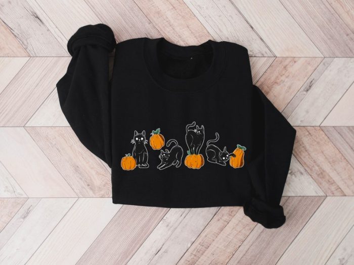 Halloween Sweatshirt Cat Sweatshirt Ghost Shirt Halloween Sweater Cool Halloween Cat Shirt Cat Lover Black Cat