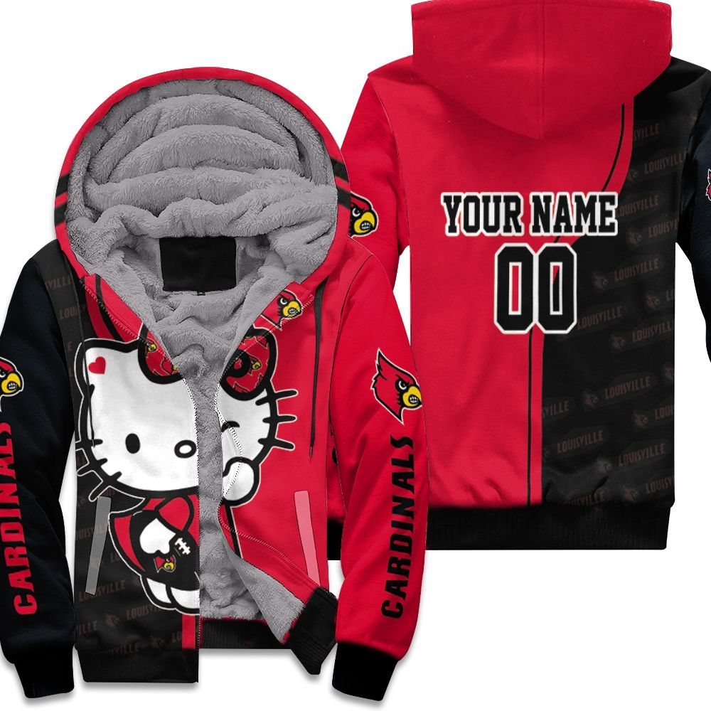 Hello Kitty Hug Louisville Cardinals Logo 3D Personalized Unisex Fleece Hoodie