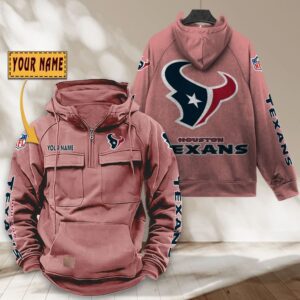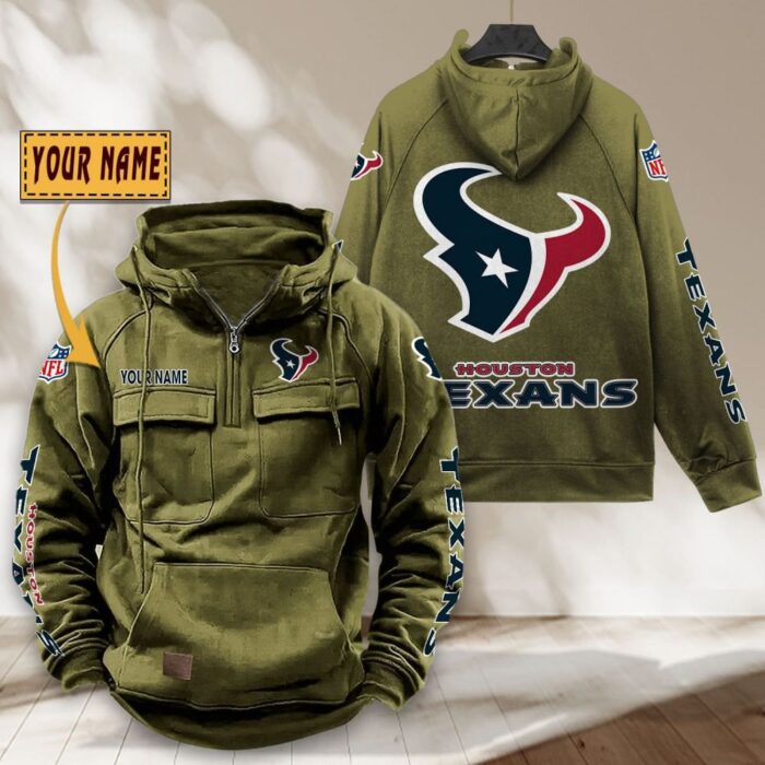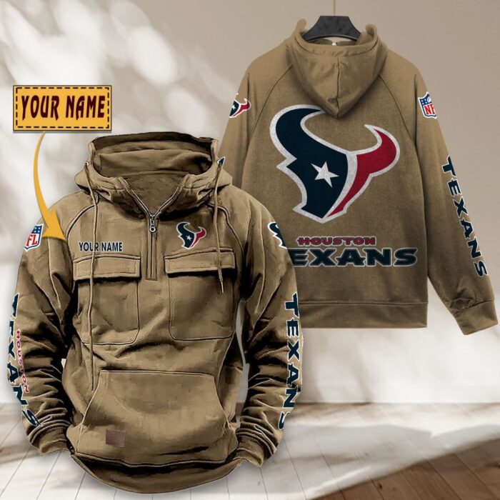 Houston Texans NFL Personalized Multi Pocket Quarter Zip Vintage Hoodie WVH1044