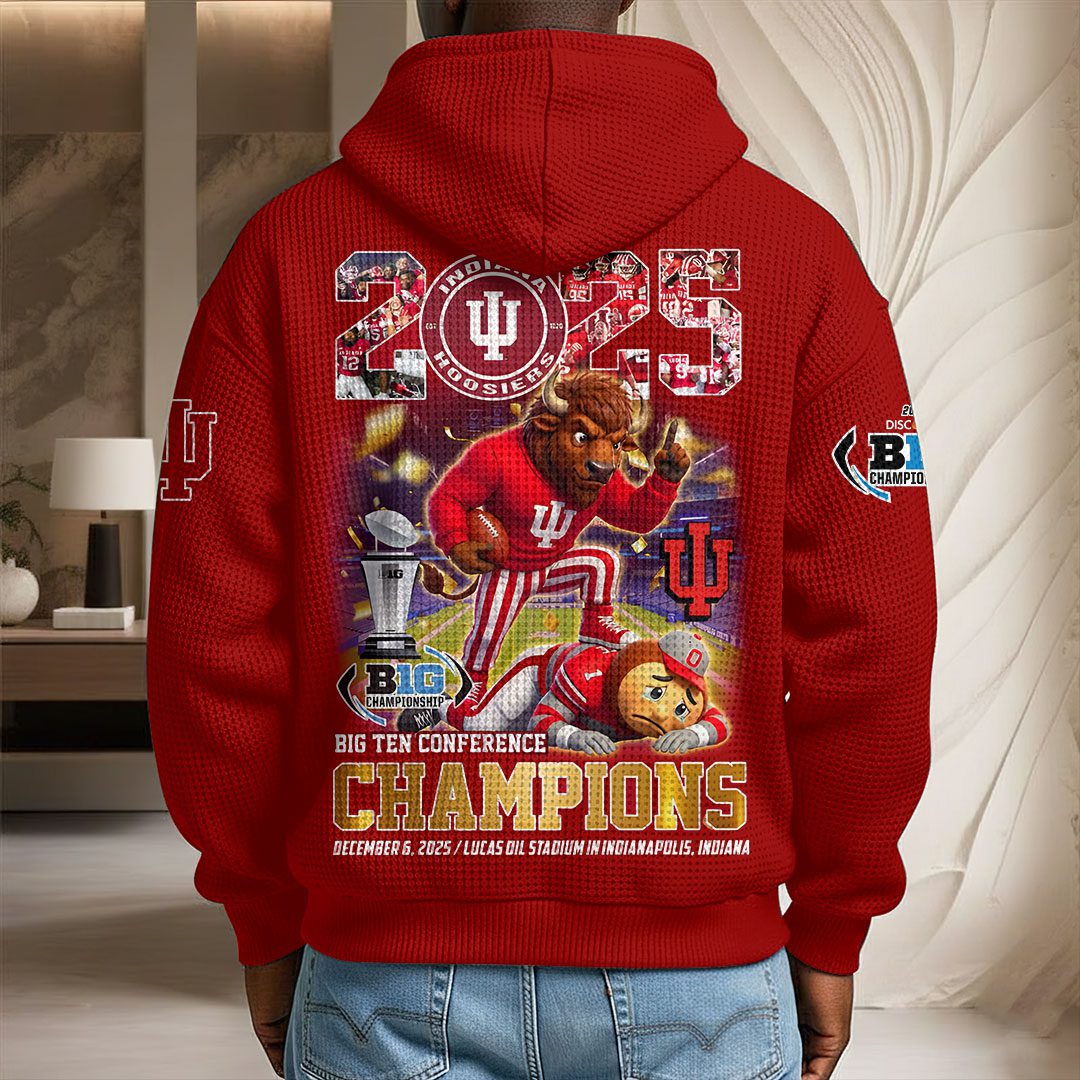 Indiana Hoosiers Football 2025 Big Ten Champions 3D Unisex Waffle Hoodie UWH1036