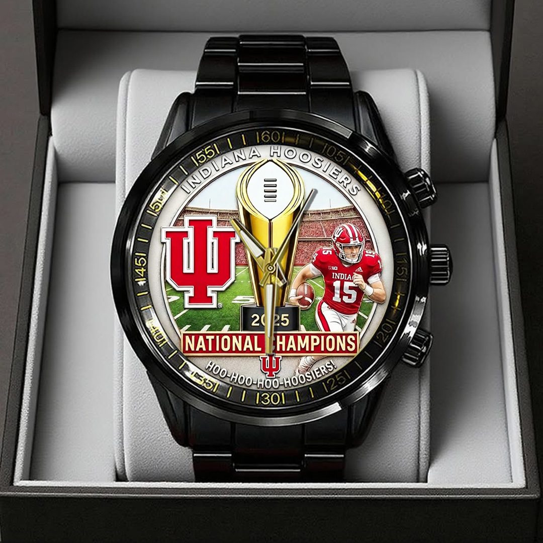 Indiana Hoosiers Football 2025 National Champions Black Stainless Steel Watch CHAMP20271