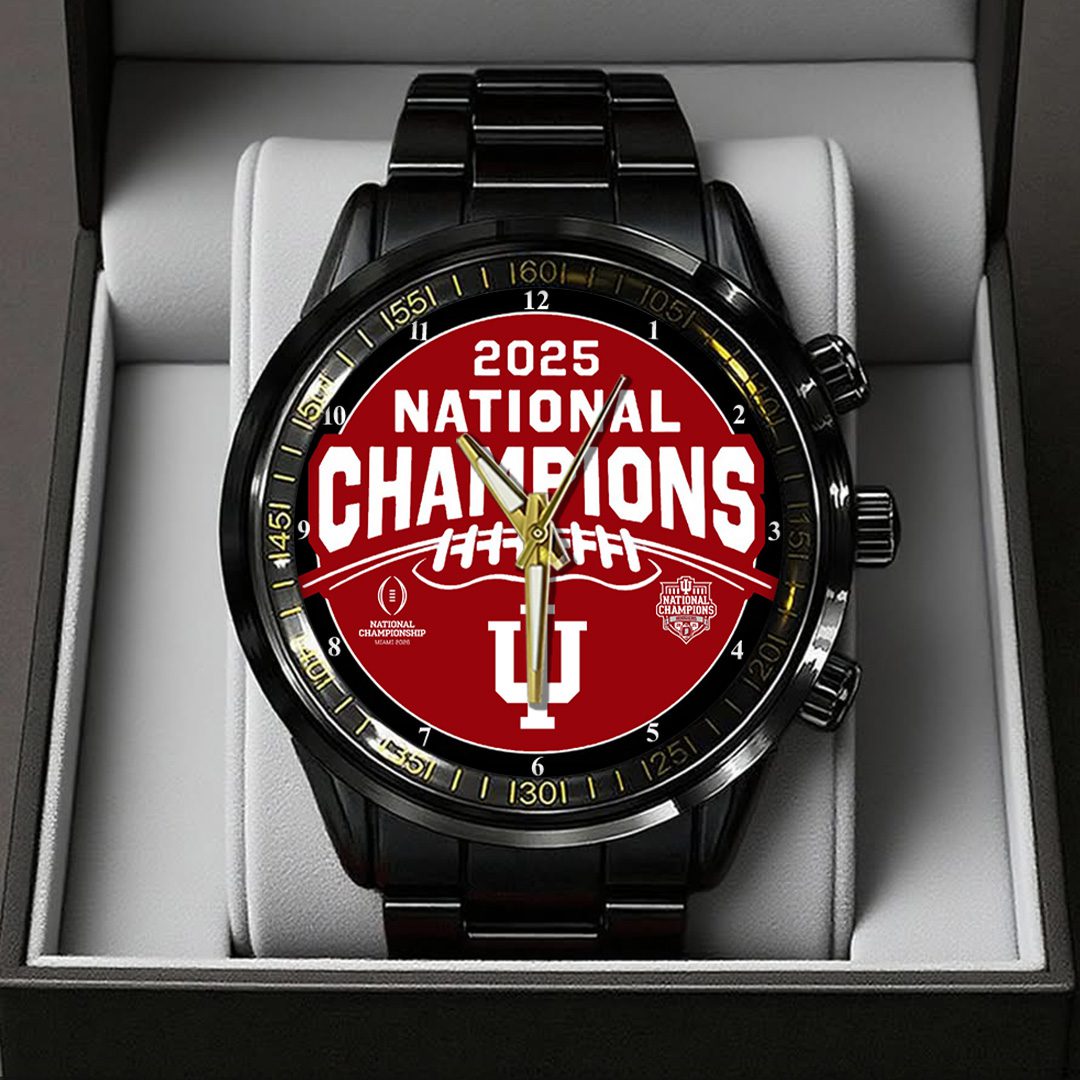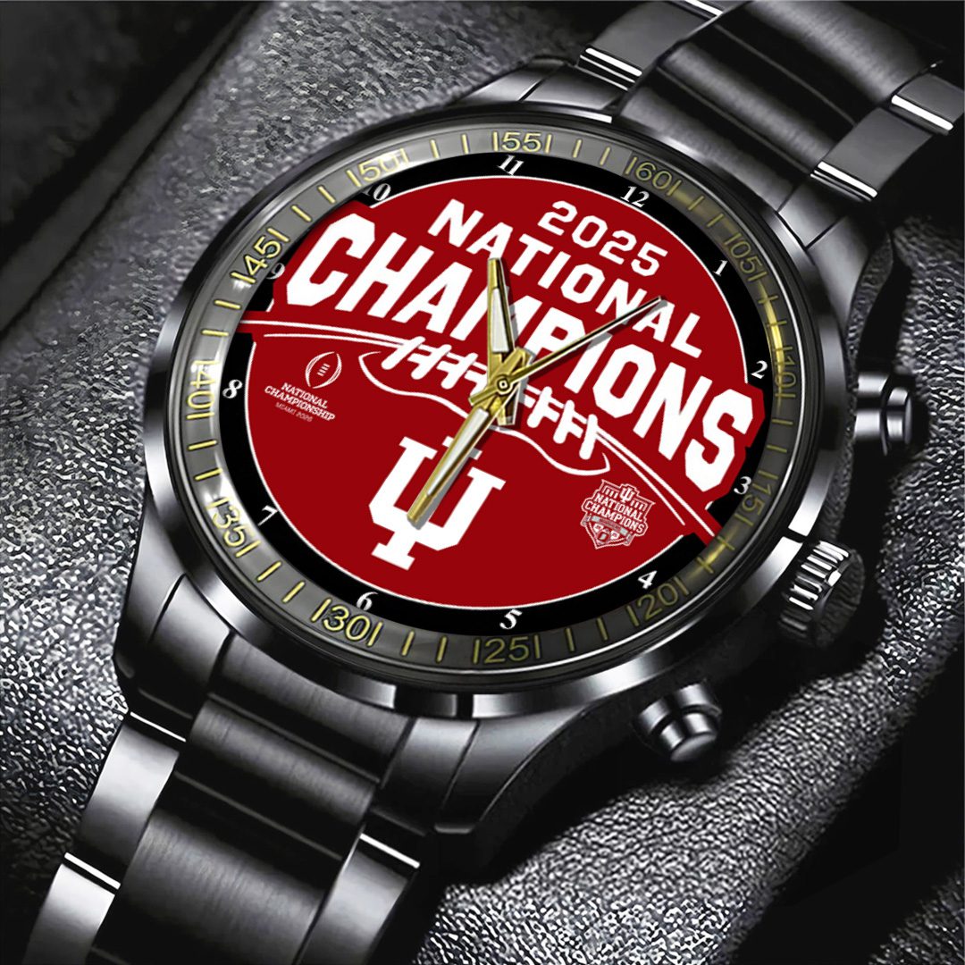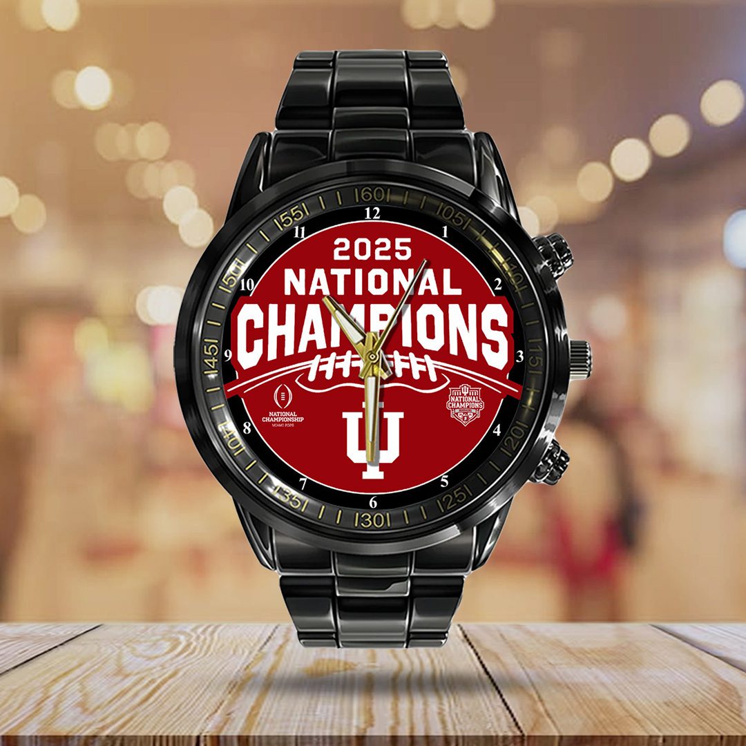 Indiana Hoosiers Football 2025 National Champions Black Stainless Steel Watch CHAMP20309