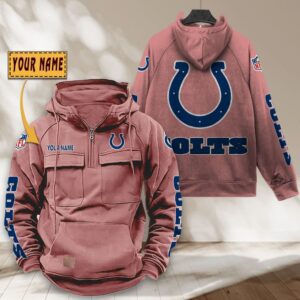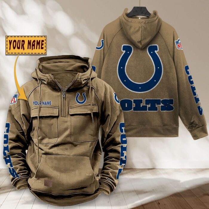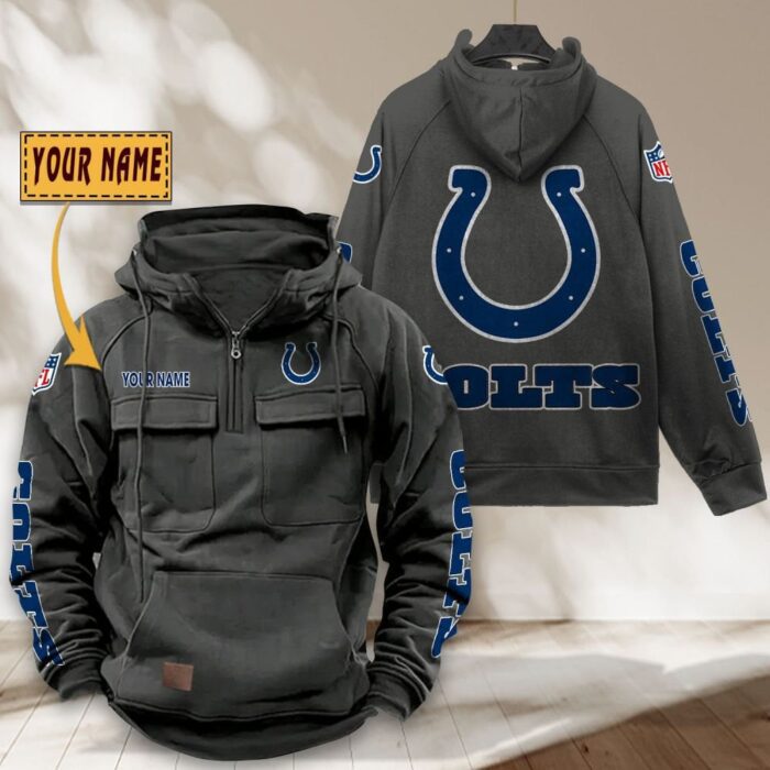 Indianapolis Colts NFL Personalized Multi Pocket Quarter Zip Vintage Hoodie WVH1045