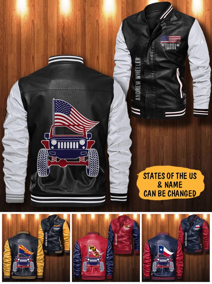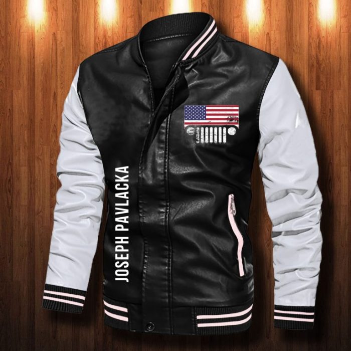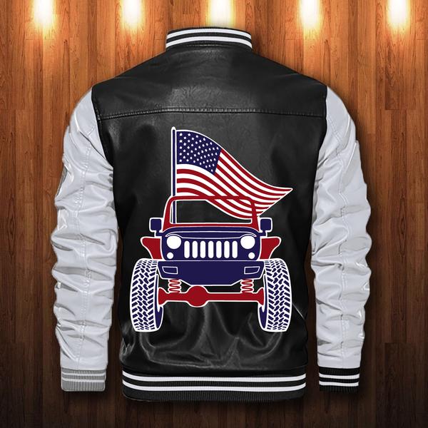 Jeep American Flag Custom Personalized Leather Bomber Jacket- Limited Edition CTLBJ141