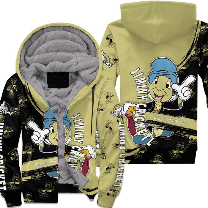 Jiminy Cricket Green Black Pattern Stripes Disney Fleece Pullover Zipped Up Unisex Hoodie